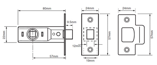 Union Rebated Tubular Latch 80mm Case/57mm Backset