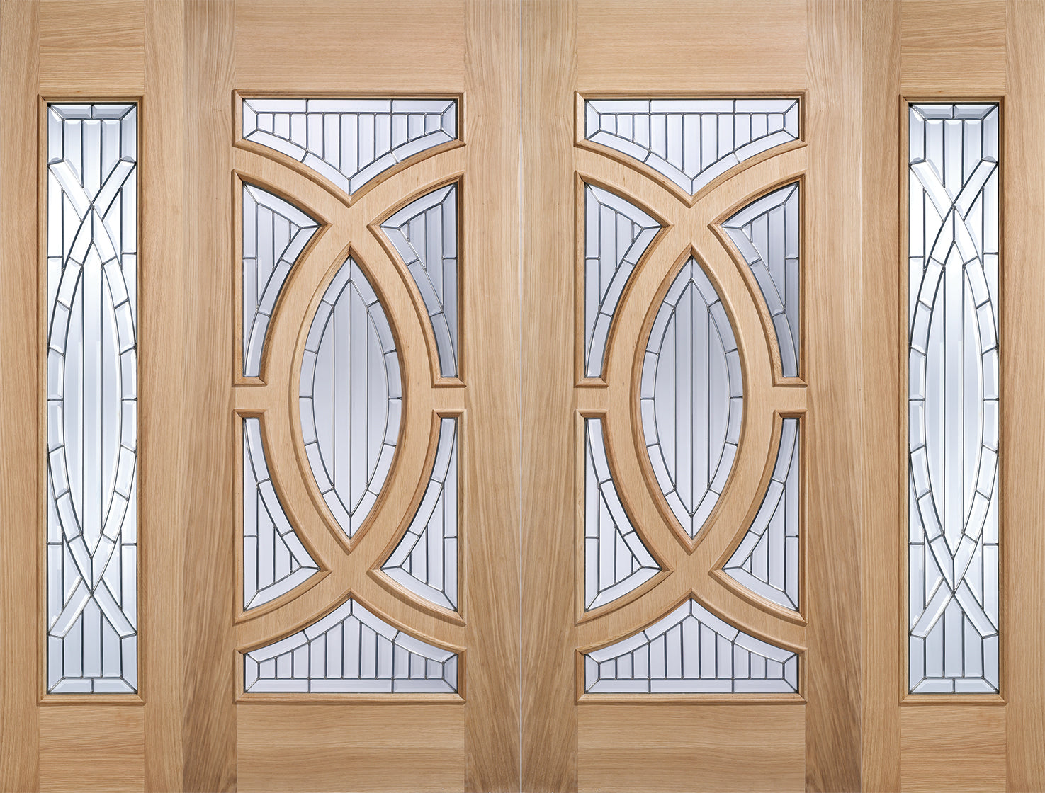 Make a great first impression with the Majestic door, featuring zinc clear bevelled double glazed panels and decorative shaped Oak panels.