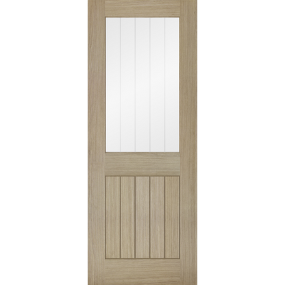 Perfect for modern homes, the pre-finished light grey internal Belize door features traditional looking square cut grooves in a popular five vertical panel design. The cool and contemporary pre-finished light grey colour will look amazing amongst your contemporary interior and with the added benefit of a large clear glazed with frosted lines panel replacing the top half or the door, it will be an internal door which is great for maximising natural light in your home. This door is fully finished and ready to hang.