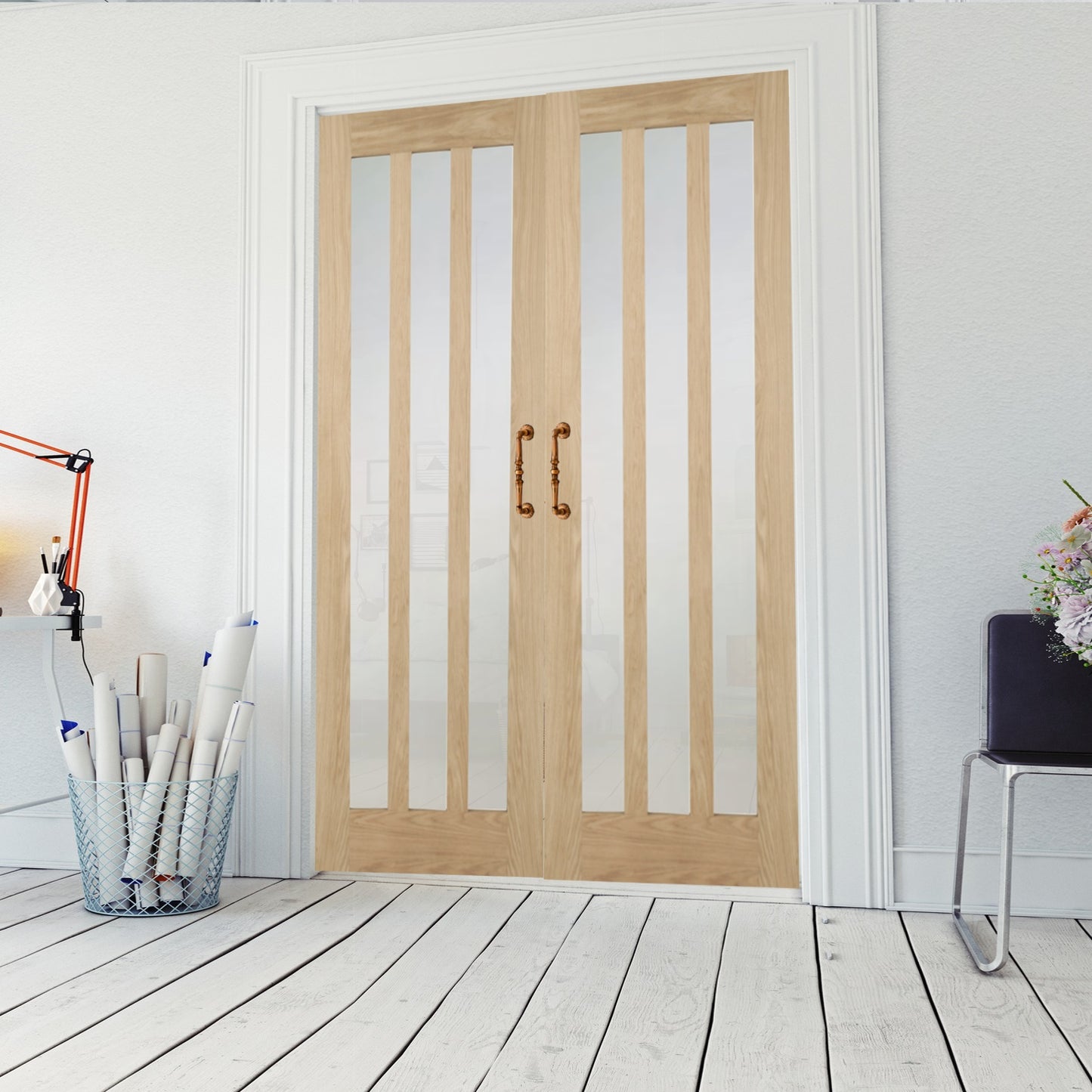 Oak Aston Frosted Glass Rebated Internal Door Pair
