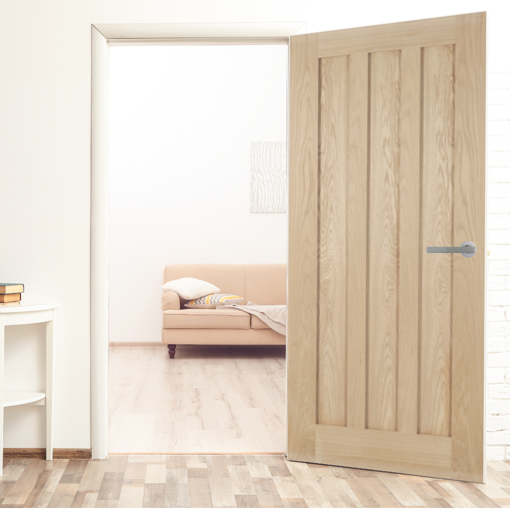 The Oak Aston Panel Pocket Door is of a modern, contemporary design. Supplied with 3 oak veneered panels (2 panels if 610mm). The solid panels on this door allow for maximum privacy. This door is available in a range of sizes, all at 35mm thick.