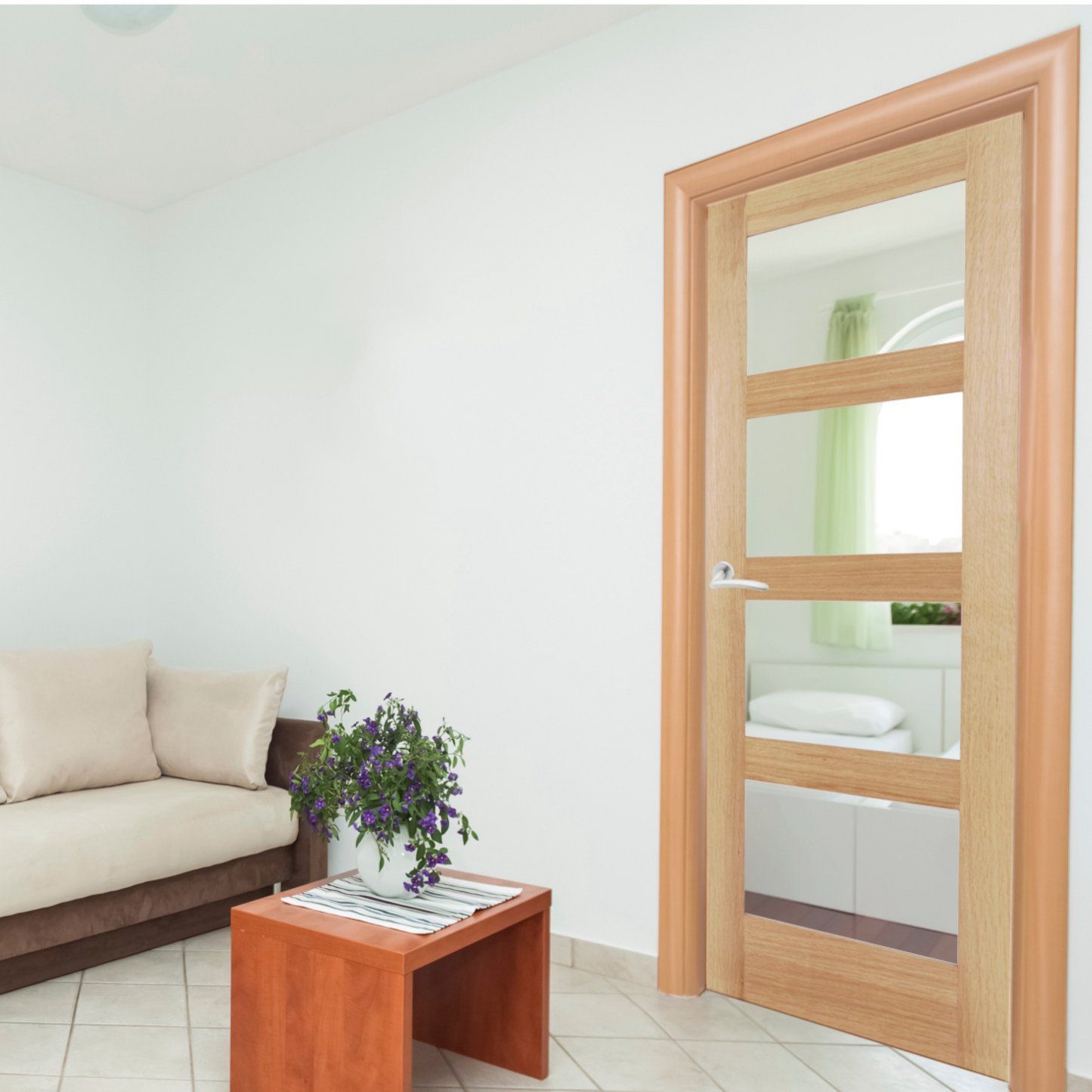 The Oak Shaker 4 Light Clear combines a classic shaker design with clear glass to give a door that will be at home in any property. The clear toughened safety glass allows for a high degree of light to move between rooms. Clear safety glass in accordance with BSEN 12150 and marked accordingly in the bottom right hand corner of each pane. This door is available in a wide range of sizes, all at 35mm thick.