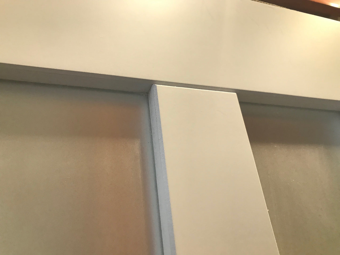 Comes with unfinished pair maker which will require the same finish as the doors and can be cut down to the height of your doors.