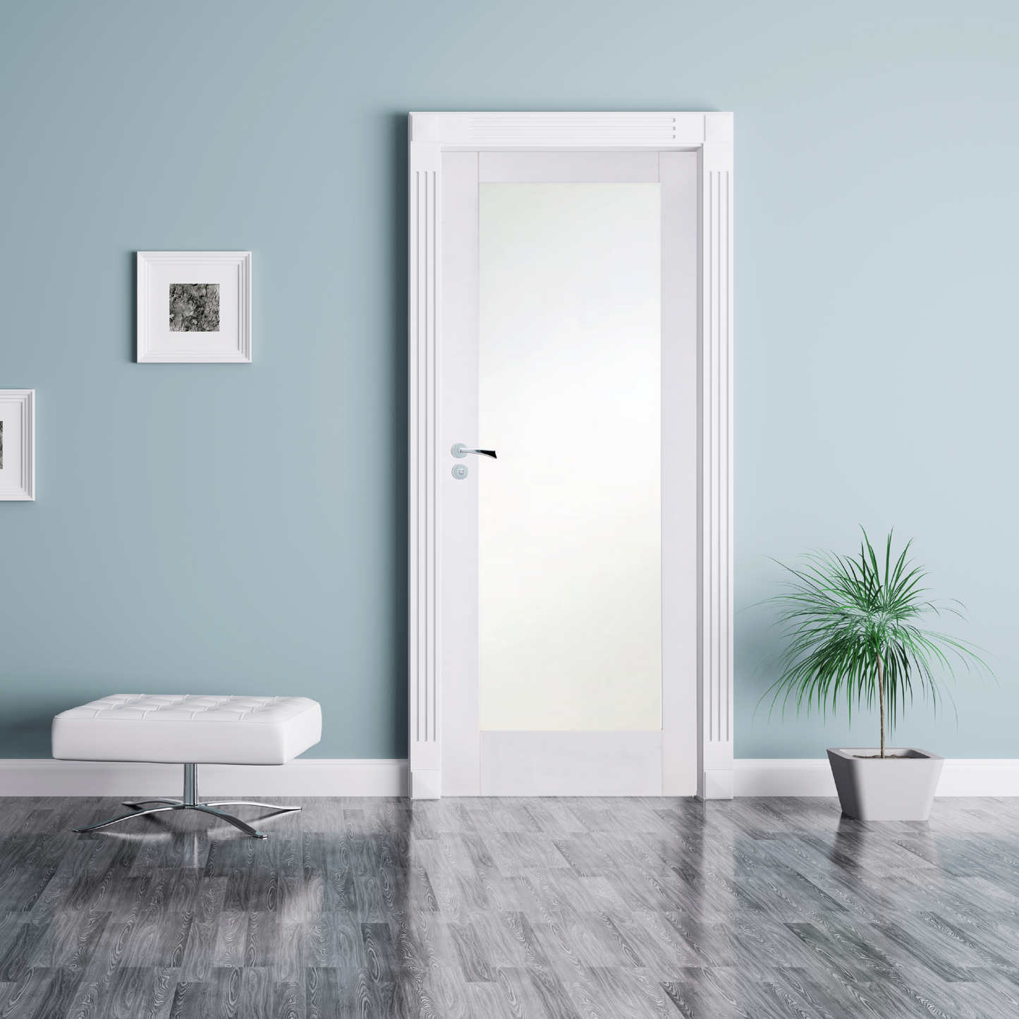 The White Shaker 1 Light Frosted Pocket Door is a great example of a simple yet stylish designed door. Featuring 1 large pane of frosted toughened safety glass, this door allows maximum light into the room. This door is available in a range of sizes, all at 35mm thick.